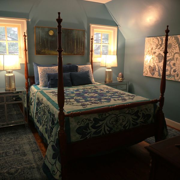 Upstairs, our thoughtfully appointed guest rooms offer hardwood floors, vintage details, and plenty of space to unwind. For longer stays or extra privacy, a full one-bedroom apartment is available on the terrace level with its own entrance and all the comforts of home.